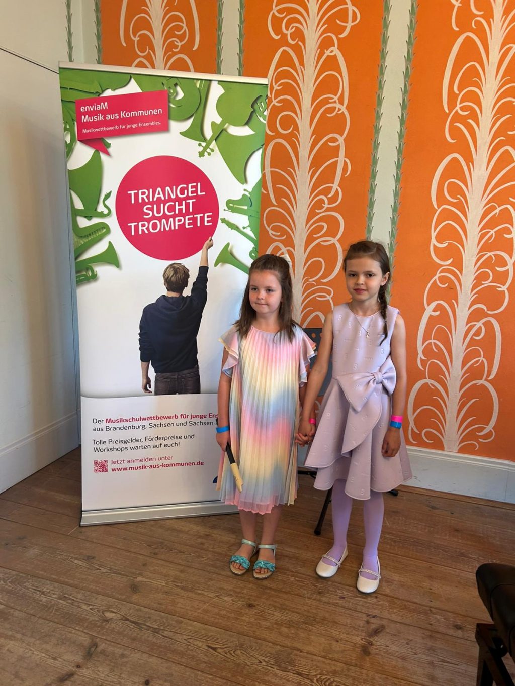 Unsere Musik- und Kunstschule schickte das Duo „Les Petites“ ins Rennen. Lena Mauermann (8 Jahre) am Klavier und Nova Lindner (8 Jahre) an der Blockflöte haben unsere Musikschule schon beim Regionalwettbewerb „Jugend Musiziert“ im Januar sehr erfolgreich vertreten und mit 22 Punkten einen ersten Preis erzielt. Beim enviaM-Wettbewerb erhielten sie den Sonderpreis in der Altersgruppe 1 (Jahrgänge ab 2011) und dürfen sich über ein Preisgeld von 300€ freuen.